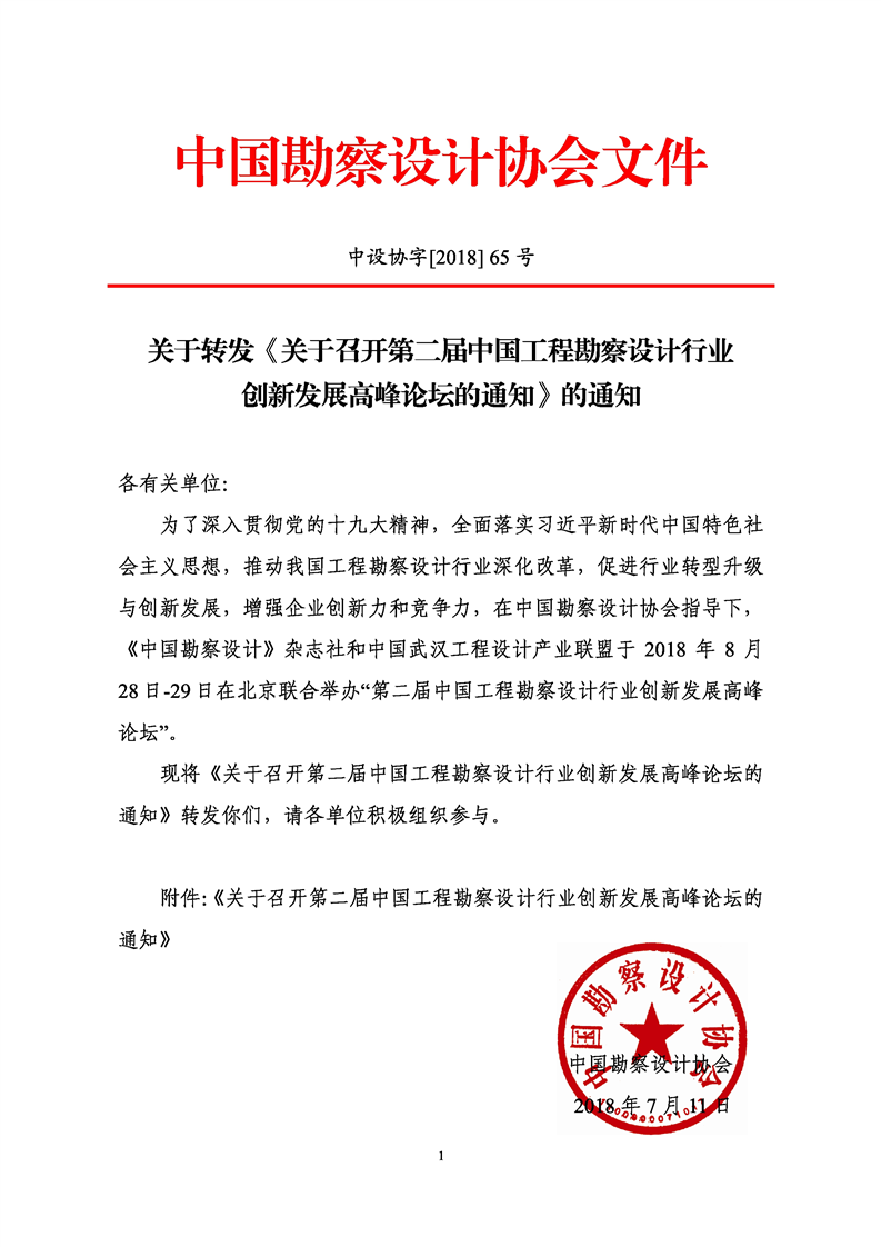 关于中设协字[2018]65号2018年第二届中国工程勘察设计行业创新发展高峰论